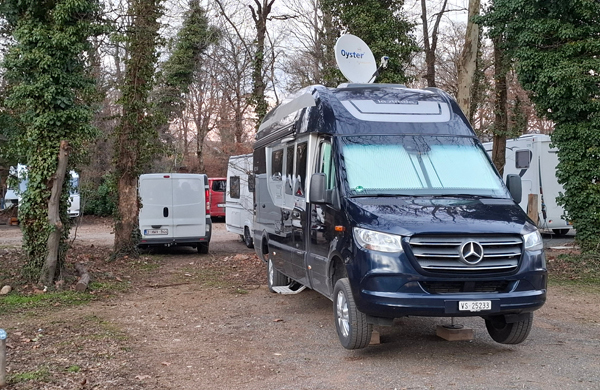 Bei kalten und eisigen Temperaturen starten wir am 4. Januar 2026 in Visp in Richtung Geneve und Frankreich. In Dardilly in der Nähe von Lyon stoppen wir für die erste Übernachtung. Nachts sinkt die Aussentemperatur auf -5° C und die Womoheizung läuft im Dauerbetrieb.