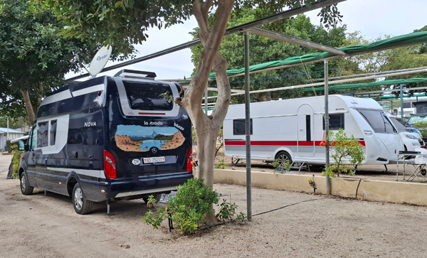 Nach einer Nacht im Parking vom Camping Los Madriles können wir den definitiven Stellplatz auswählen und umziehen.