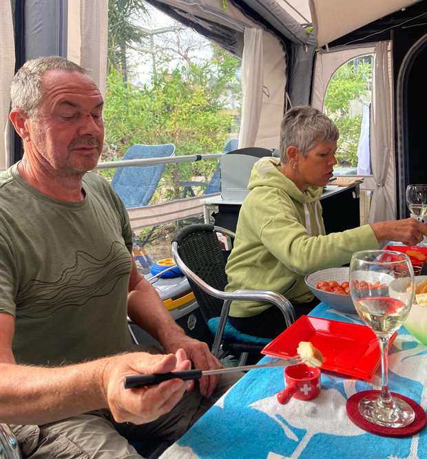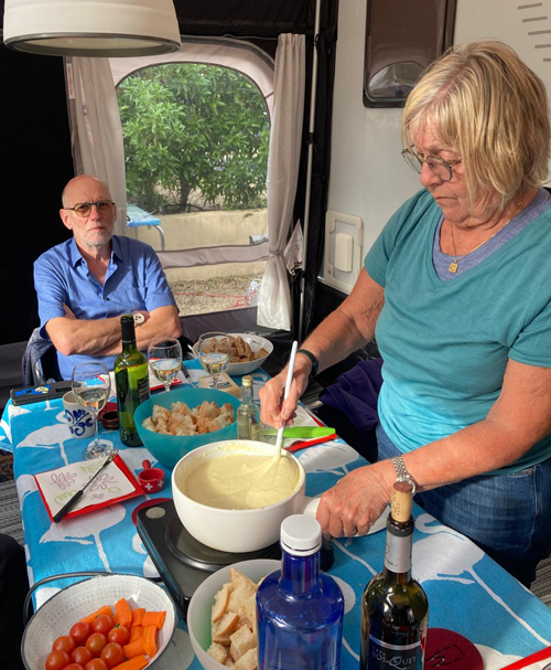 Fondueplausch im Vorzelt bei Angela und Elmar
